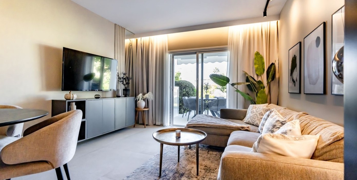 This beautifully renovated and fully furnished 3-bedroom, 2-bathroom ground-floor apartment is located in the sought-after area of Nueva Andalucía, Marbella. Designed with a high standard of interior style, the apartment offers a spacious and comfortable living environment.
