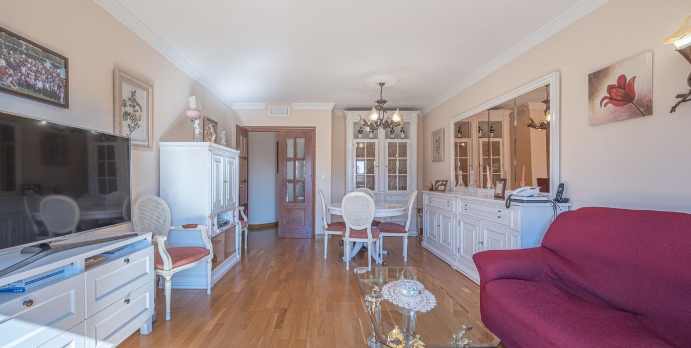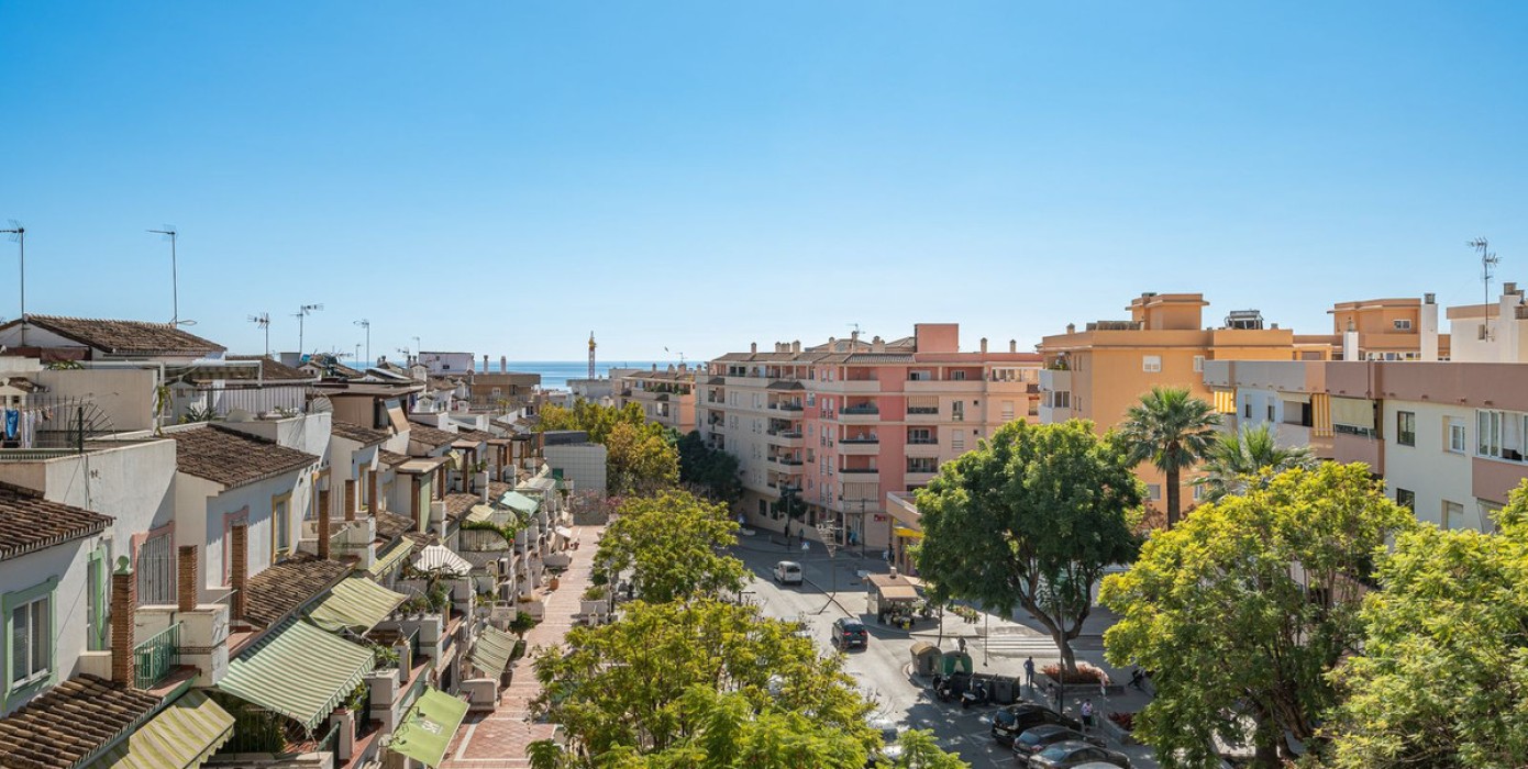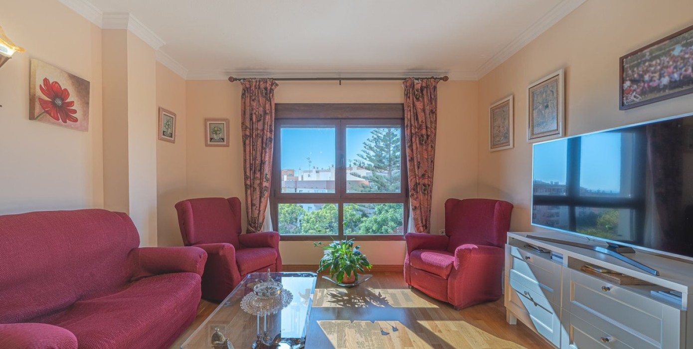 Central apartment in Estepona, 350 meters from the beach, spacious, bright, sunny, on the corner and with the best orientation, with all services around as well as pharmacies, supermarkets and schools.It consists of 4 bedrooms, 2 bathrooms, one en suite, a large living room with a terrace, open views of the city and the sea, in excellent condition, it has wooden floors, a fully equipped and spacious kitchen with a large storage capacity, with a dining table, it is all functional and livable without having to worry about improvements.