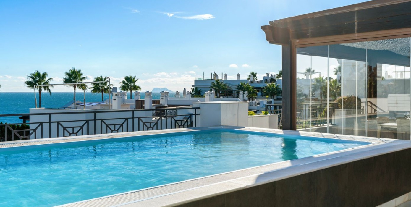 We present an exclusive penthouse in a privileged seafront location with breathtaking panoramic views over the bay of Estepona, Gibraltar and the African coast.