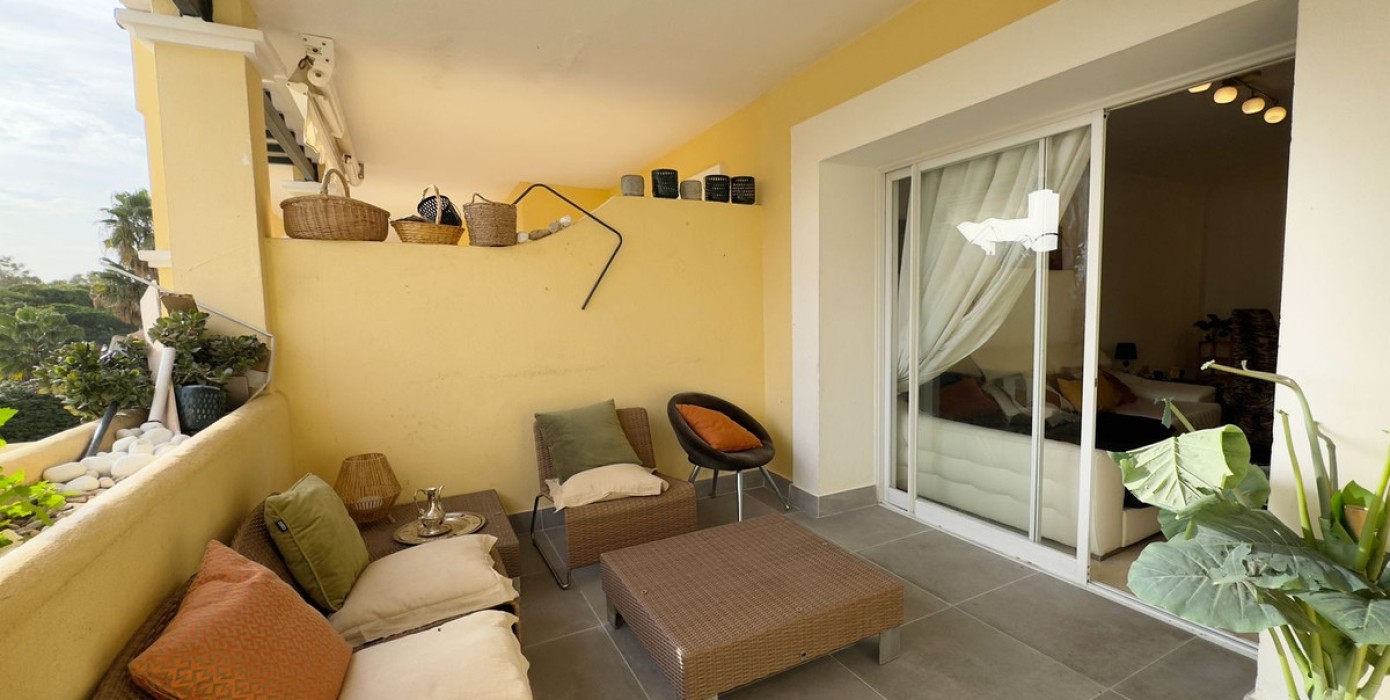 Cozy three-bedroom apartment on the first line of La Quinta golf courses,Located in a private and closed urbanization with 75 apartments and extensivegarden areas, three swimming pools and numerous parking spaces.