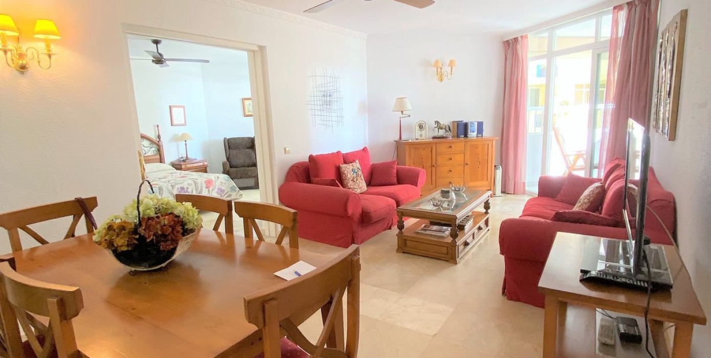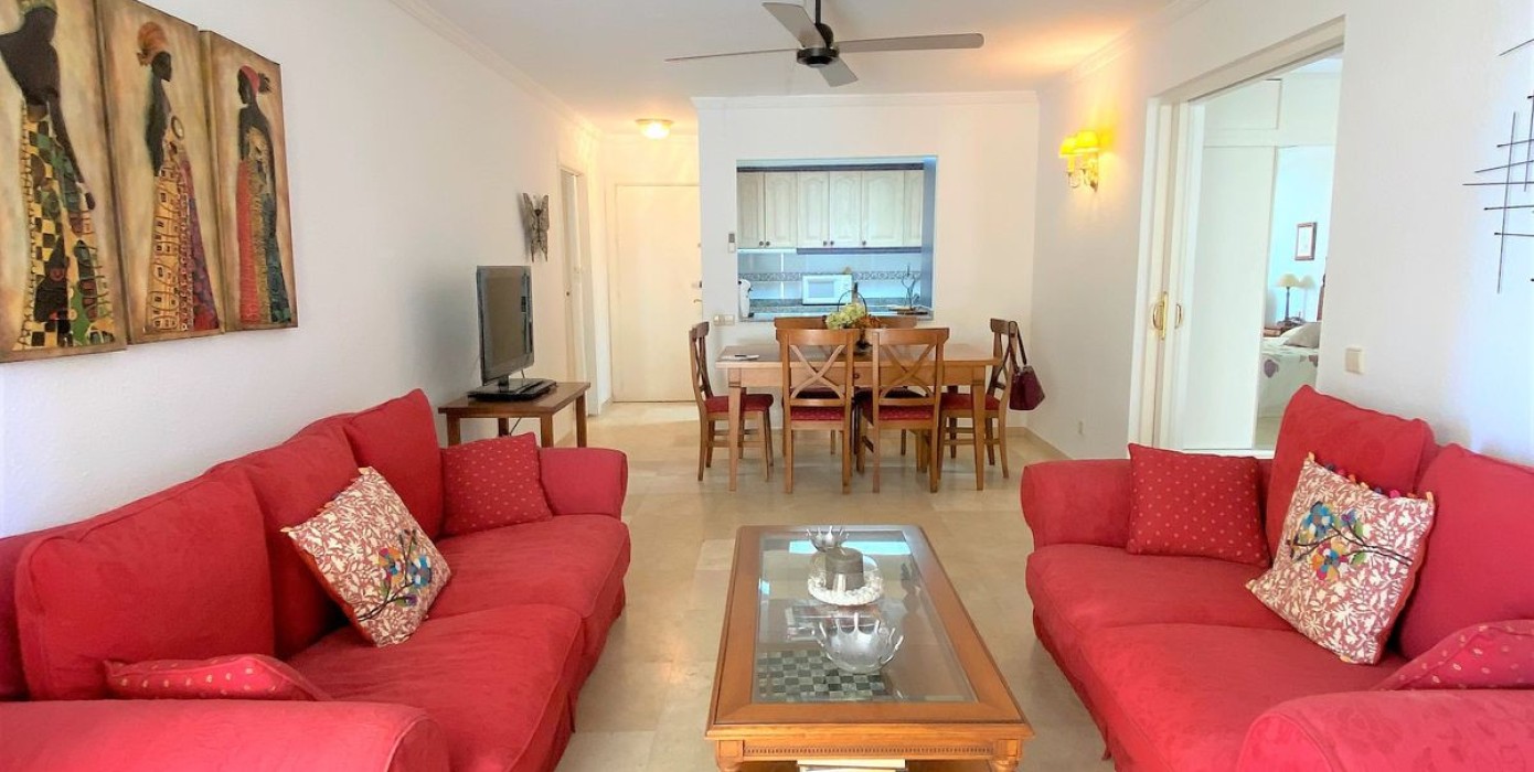 Two bedroom and two bathroom apartment in Edificio Marbella 2000, this flat is composed of a studio and a one bedroom flat which are joined together.It has 3 terraces with sea views.Spacious living - dining room with open plan kitchen.The flat also has a parking space.