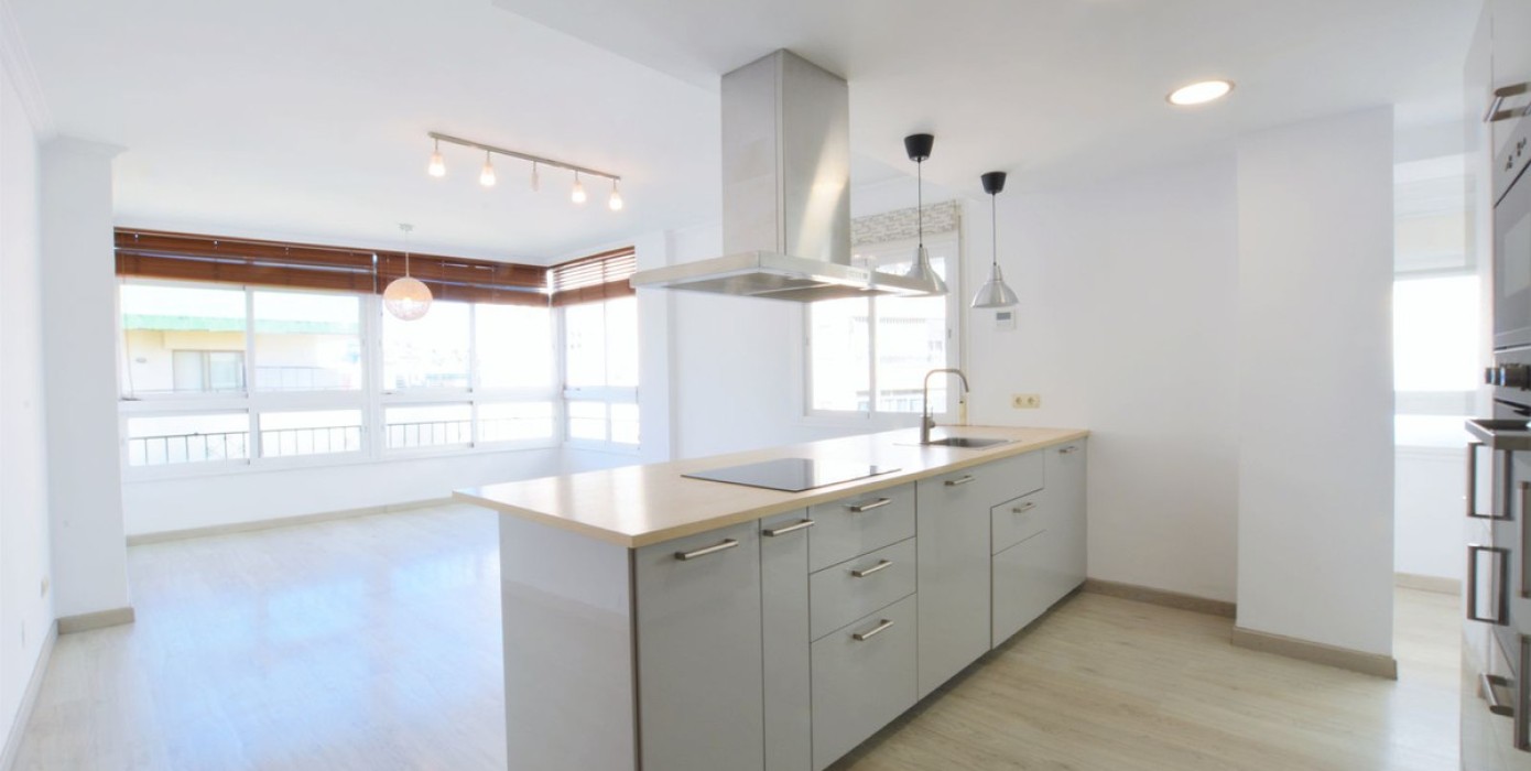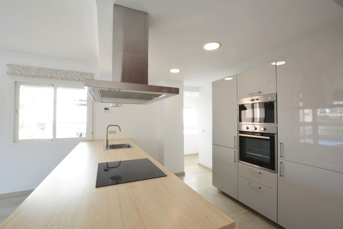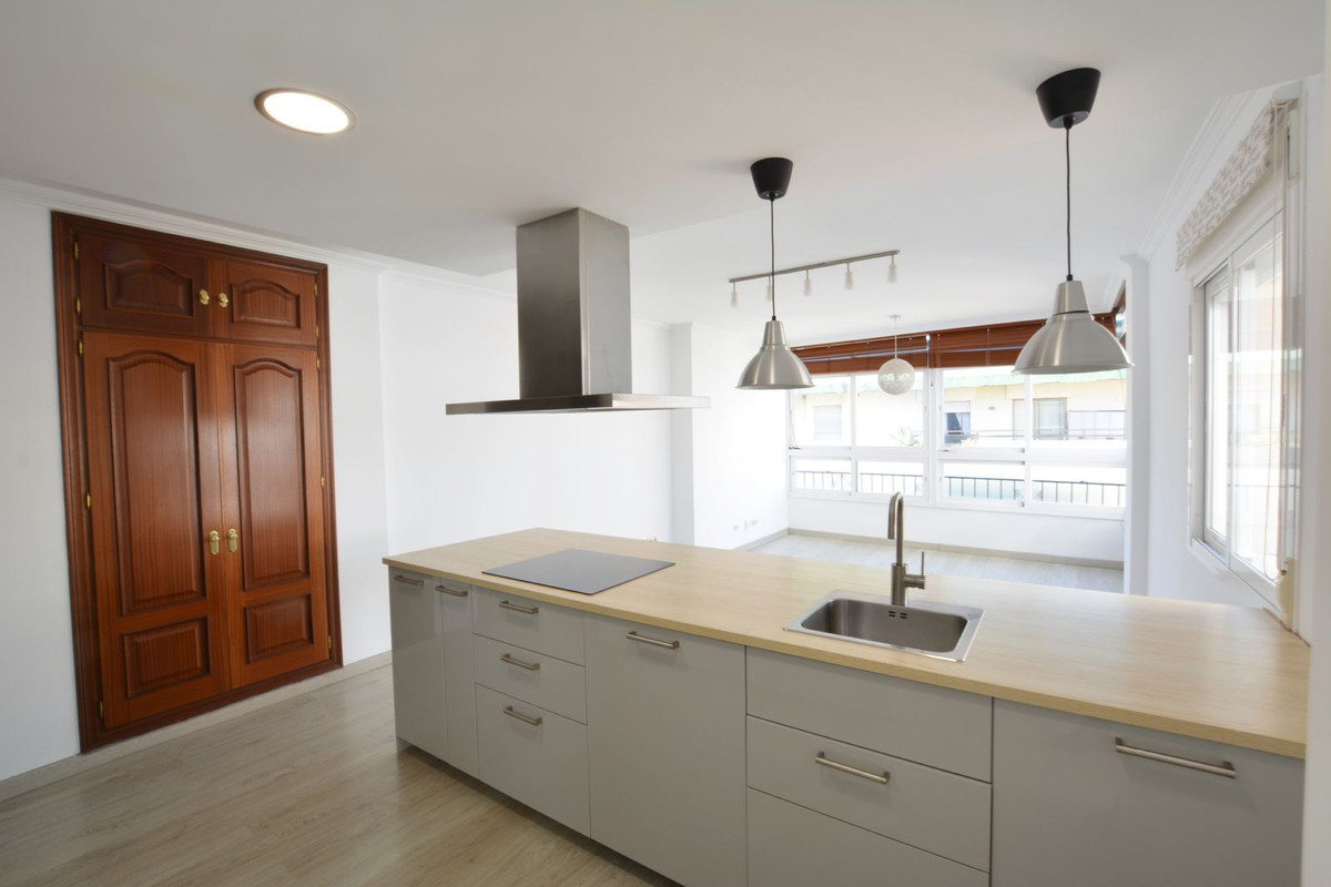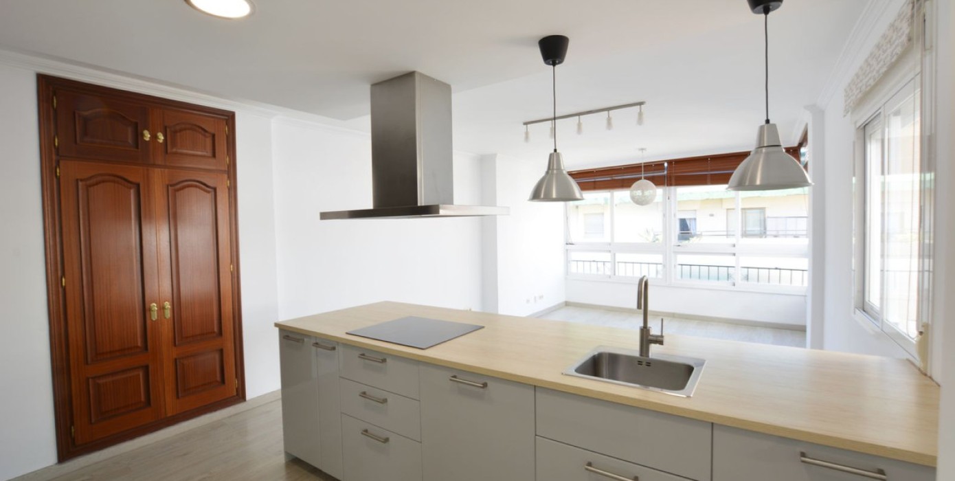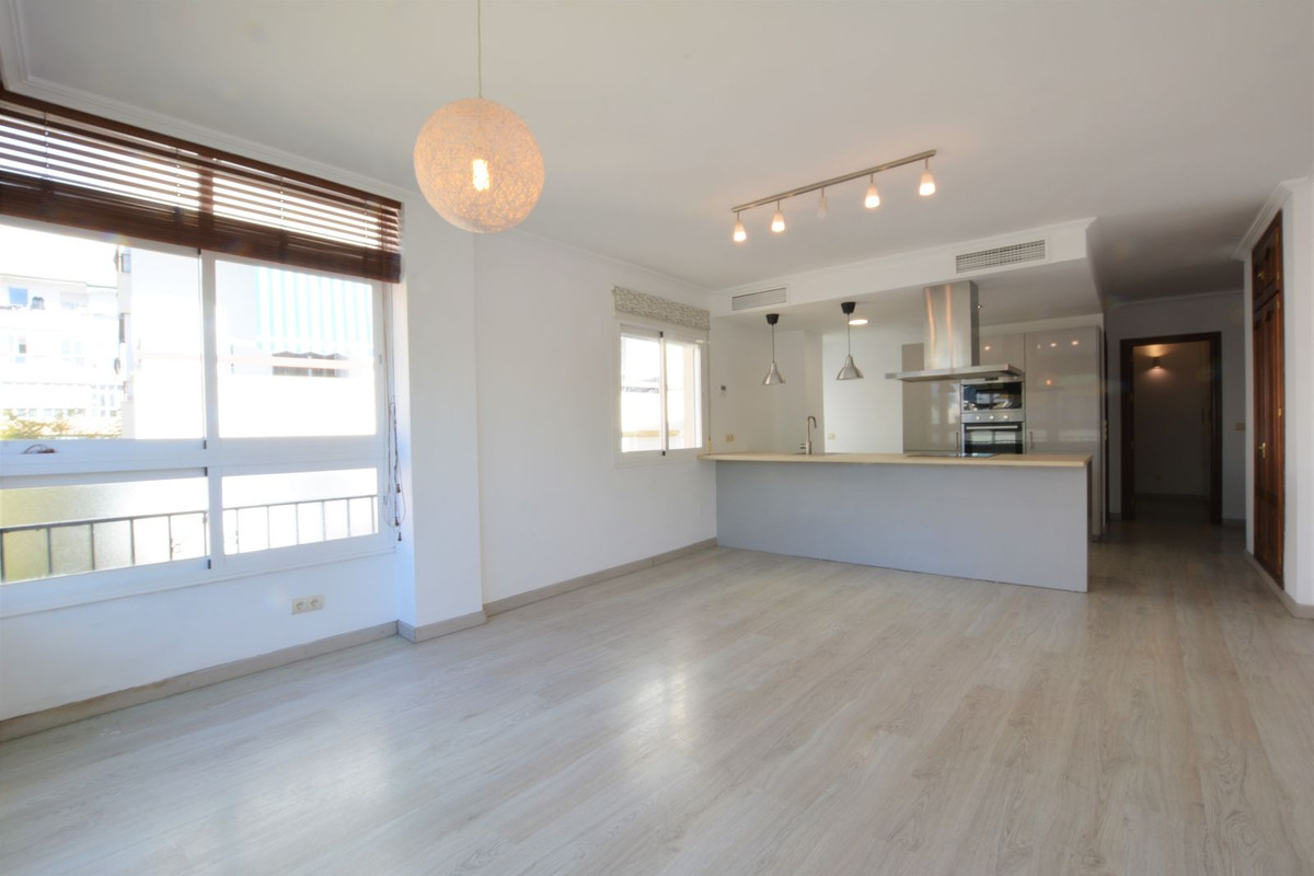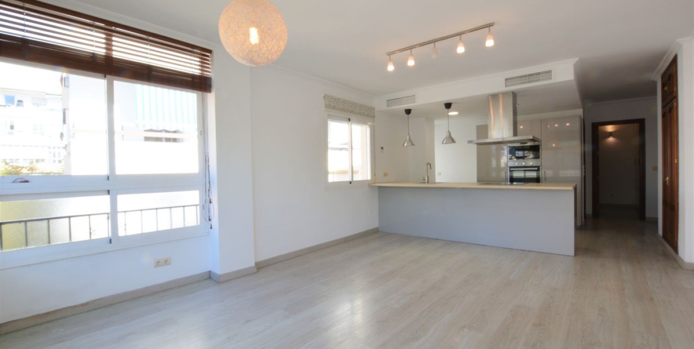 3 bedroom 2 bathroom corner apartment in the centre of Marbella. Almost completely refurbished 3 years ago, the property has a large open plan kitchen, living room and laundry room with large windows that provide the room with lot of light. The original terrace of the property, 8m2, is added to the living room, forming a single space. The property has a large master bedroom with en-suite bathroom and dressing area, plus 2 further bedrooms sharing a second bathroom. In the refurbishment an air conditioning heat pump system (hot and cold) was installed, as well as all the new plumbing and electrical system.