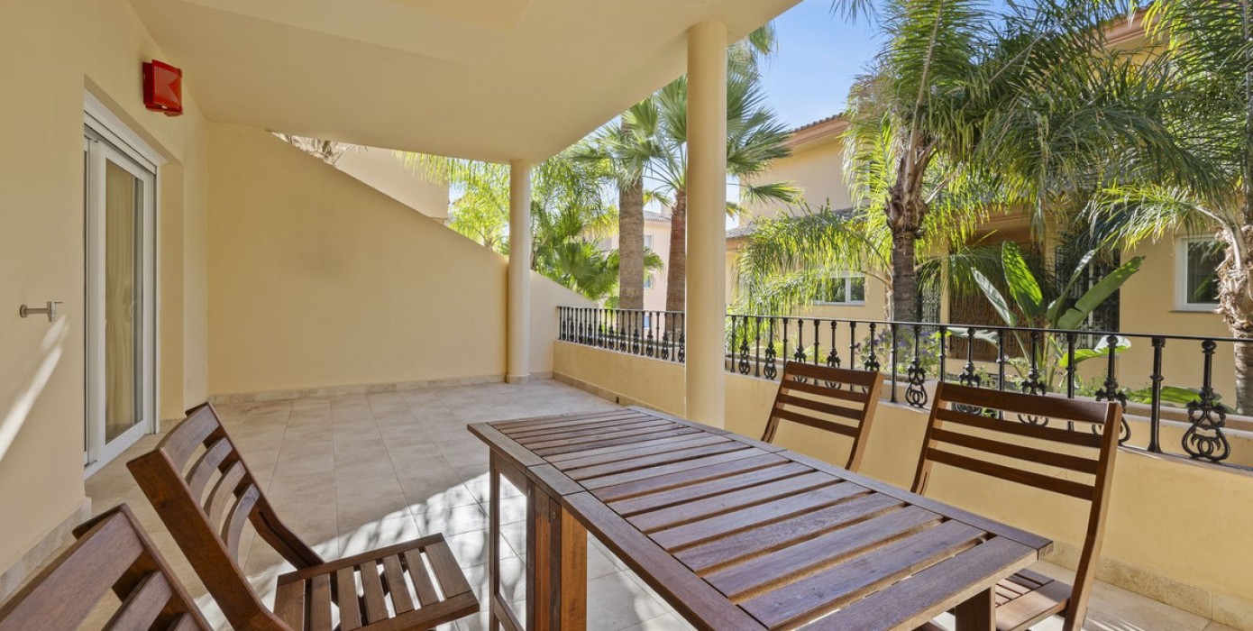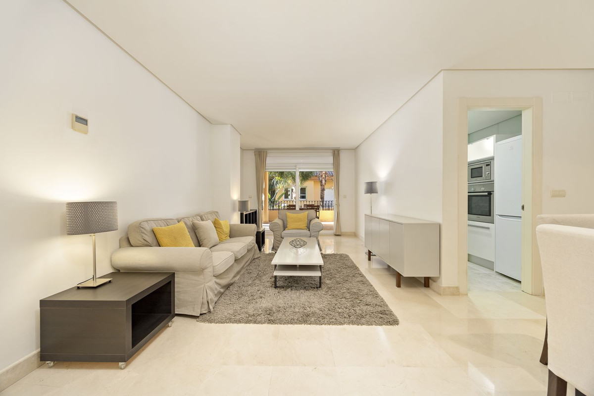 Great one bedroom apartment facing south west located in a modern and private residential complex in the heart of the Golf Valley, in Nueva Andalucia, just 5 kilometers from Puerto Banus and Aloha College in Marbella.This bright apartment consists of entrance hall, spacious living room, kitchen with utility room and bedroom with bathroom en suite.From the living room and the bedroom there is access to the magnificent covered terrace.