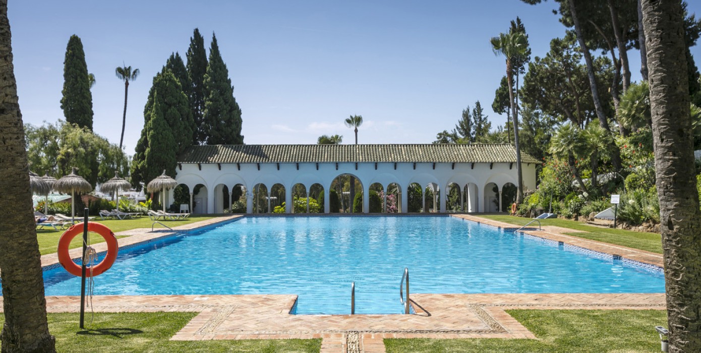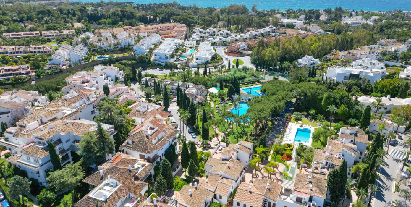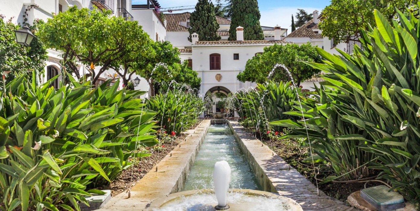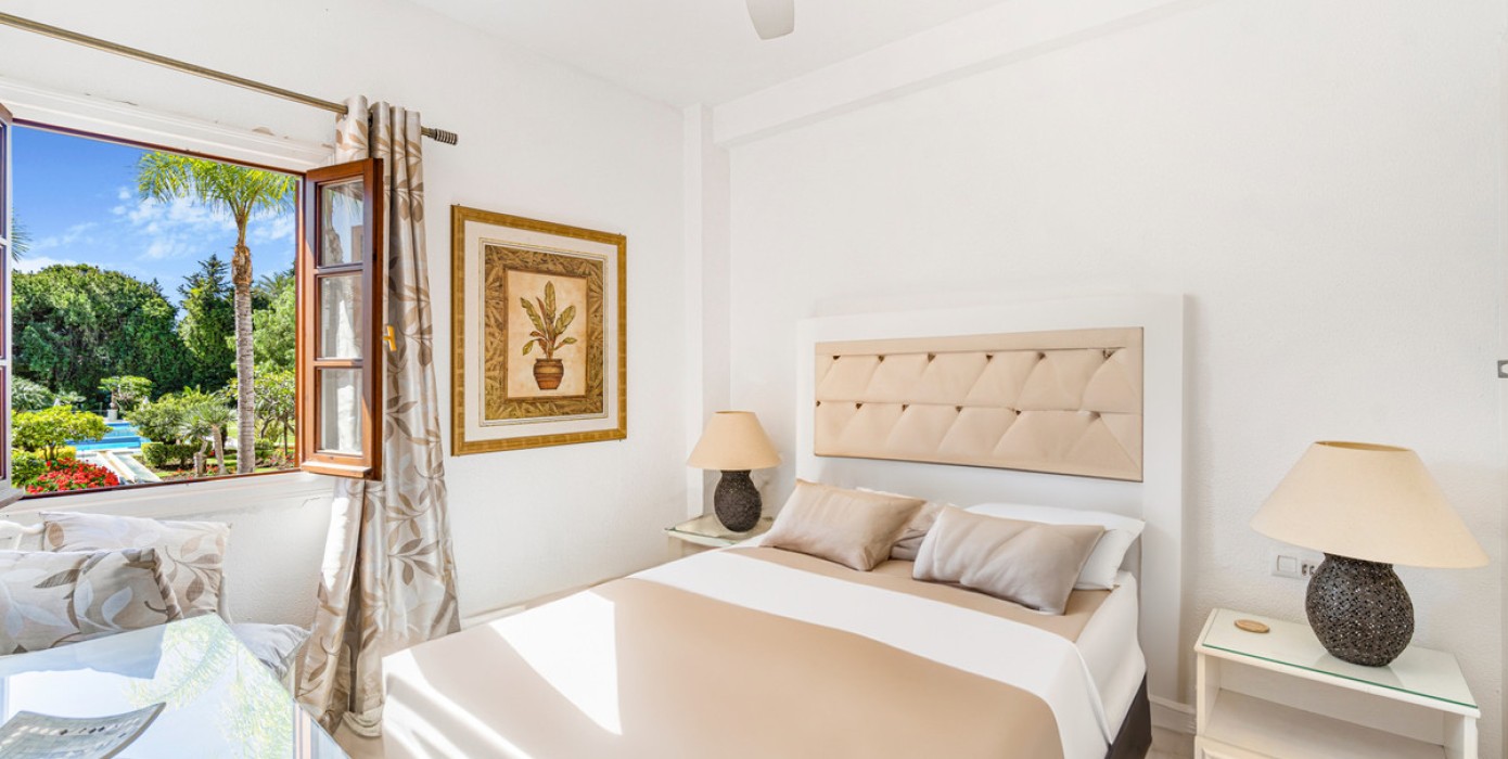 Wonderful two-bedroom ground floor apartment in the exceptional gated community of Señorio de Marbella, built in Andalusian pueblo style and set in the heart of Marbella's fabulous Golden Mile, with expansive landscaped tropical gardens, waterfalls, five swimming pools (one heated in the colder months), two tennis and two paddle courts and a gym. This gated community has manned security with a guard on duty 24/7.