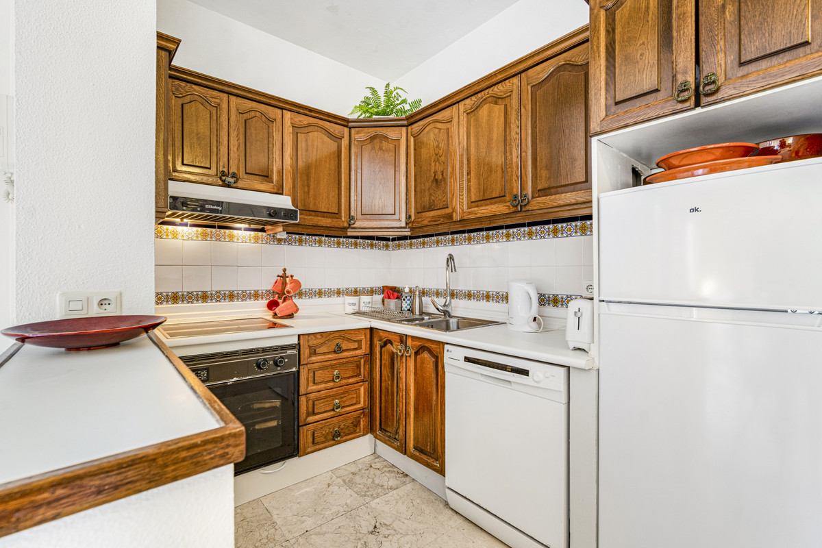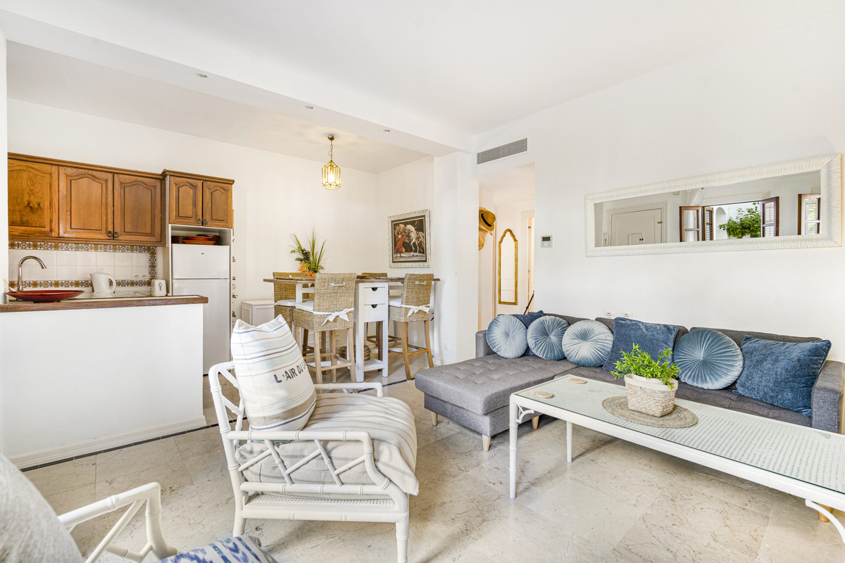 Close to all local amenities, Puente Romano and the beach. The property has an open plan living and dining area; fully equipped open plan kitchen; two bedrooms with beautiful views over the community; and a shared bathroom. Other features include hot and cold air conditioning and fitted wardrobes