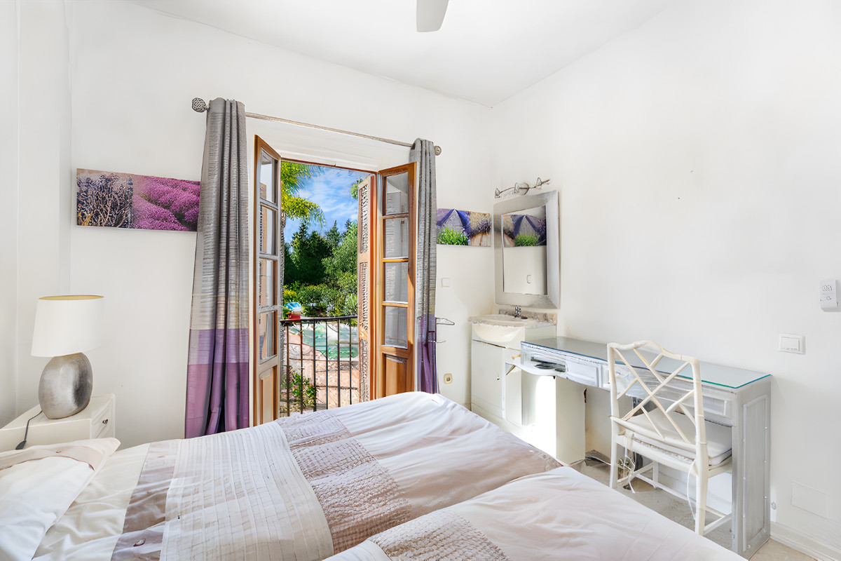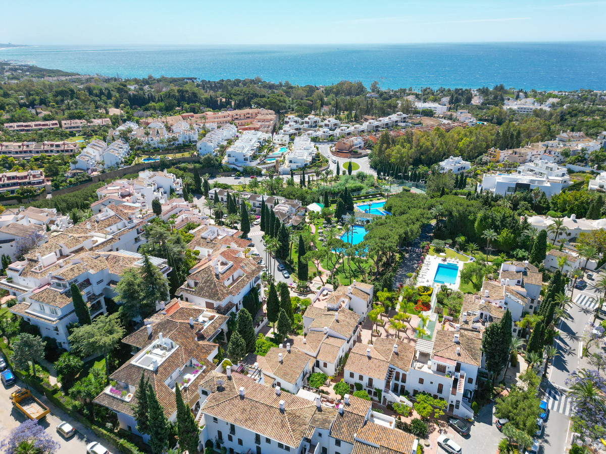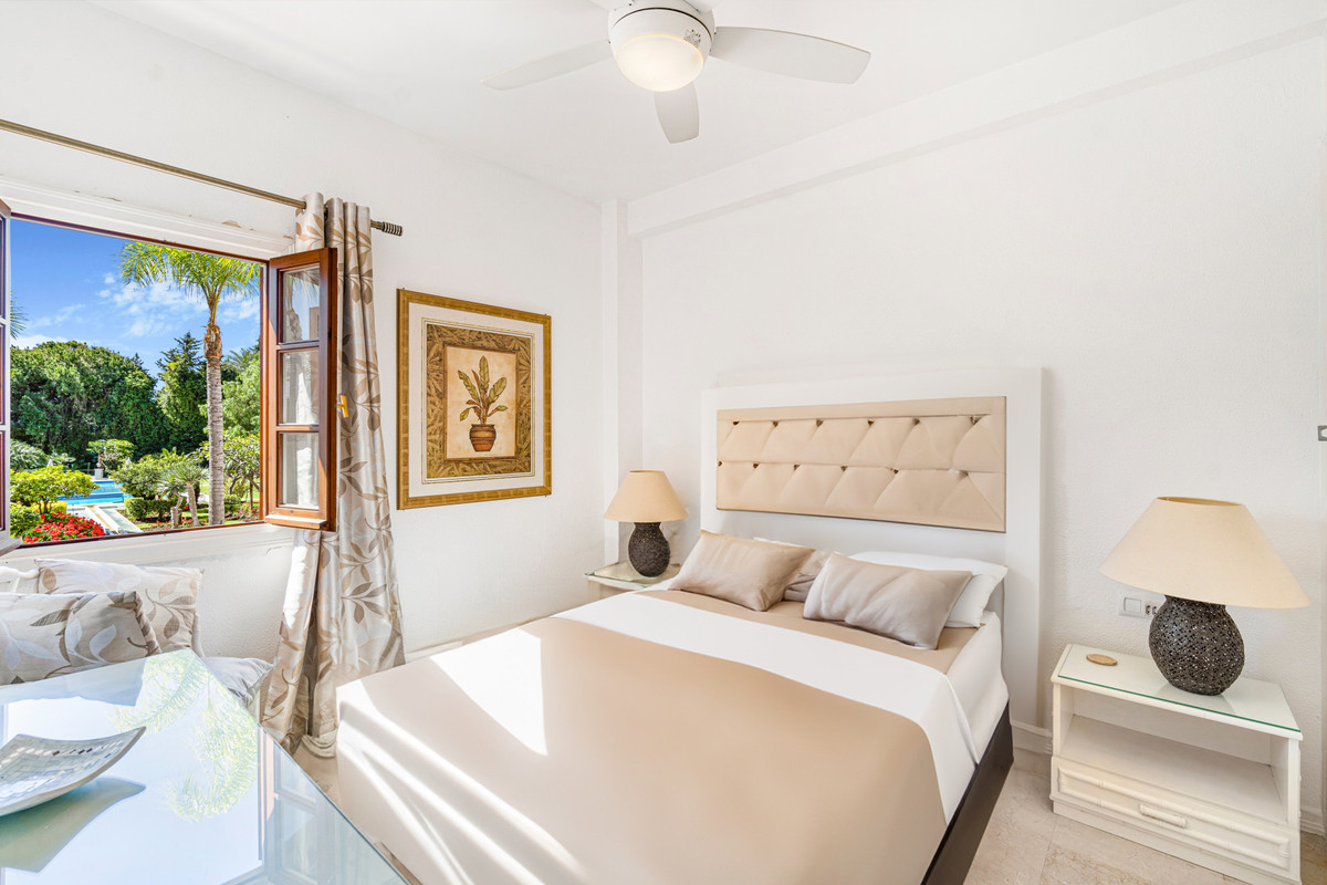 Wonderful two-bedroom ground floor apartment in the exceptional gated community of Señorio de Marbella, built in Andalusian pueblo style and set in the heart of Marbella's fabulous Golden Mile, with expansive landscaped tropical gardens, waterfalls, five swimming pools (one heated in the colder months), two tennis and two paddle courts and a gym. This gated community has manned security with a guard on duty 24/7.