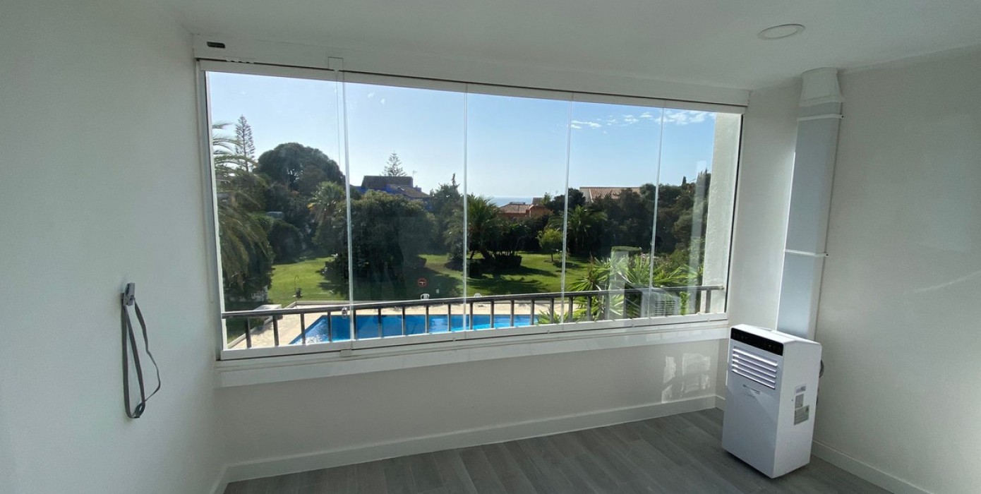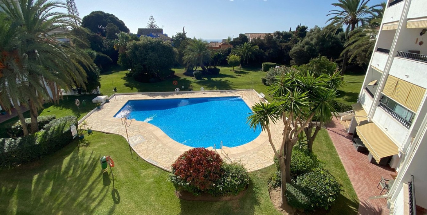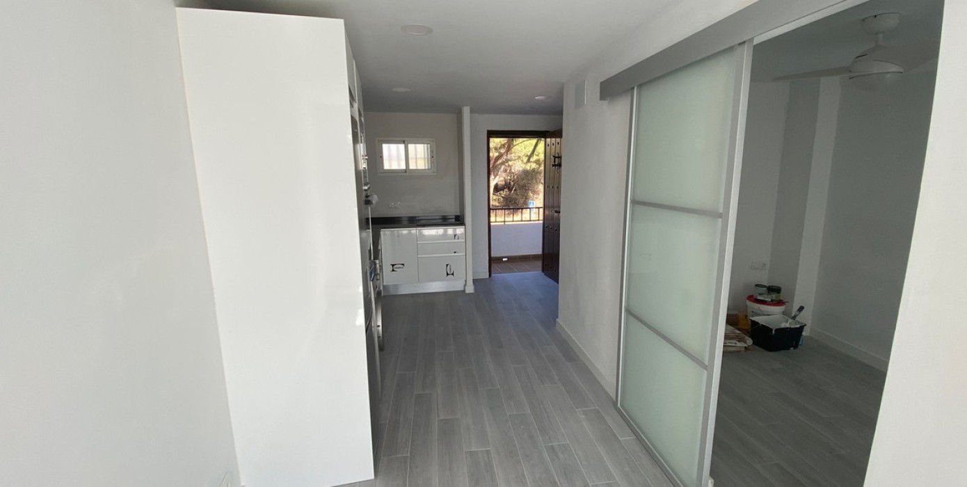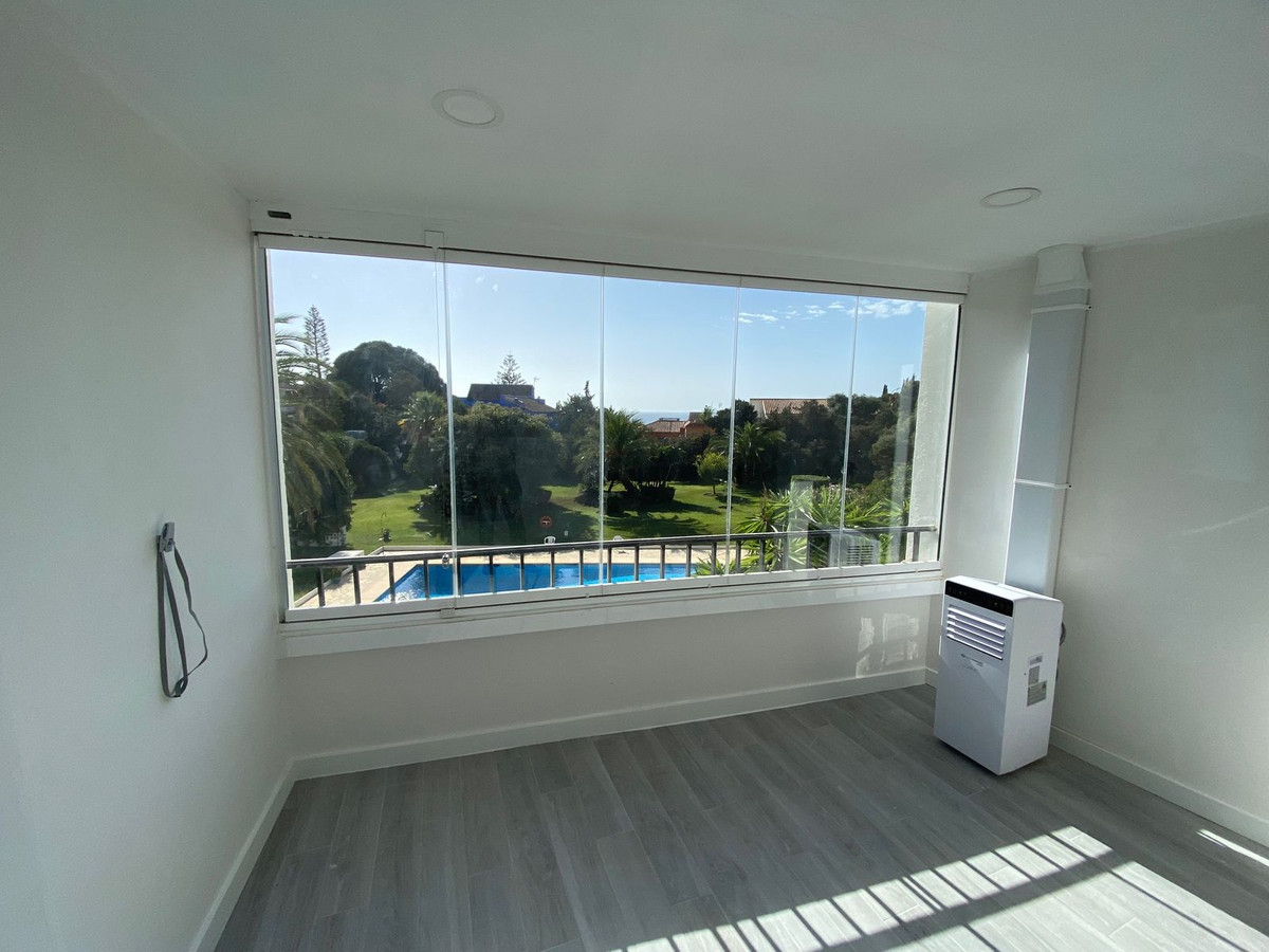 Brand new!!! Recently completely renovated, this picturesque studio in Marbesa faces south from where you can enjoy the sun and its extensive views of the community garden, pool and Mediterranean Sea. Located in an established quiet residential area, just a 10-minute drive east of Marbella, and a 10-minute walk from the beach and Sinbad restaurant, as well as a few minutes' drive from the beaches and Puerto de Cabopino and the well-known neighborhood of Elviria with its shopping and restaurant centers, Hotel Don Carlos and the renowned Beach Club, Nikki Beach.