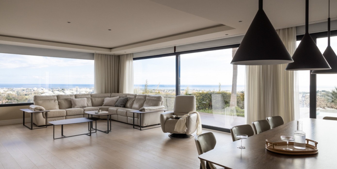 Sleek newly renovated villa in a gated community of El Paraiso offering breathtaking views of the sea, Gibraltar and Africa