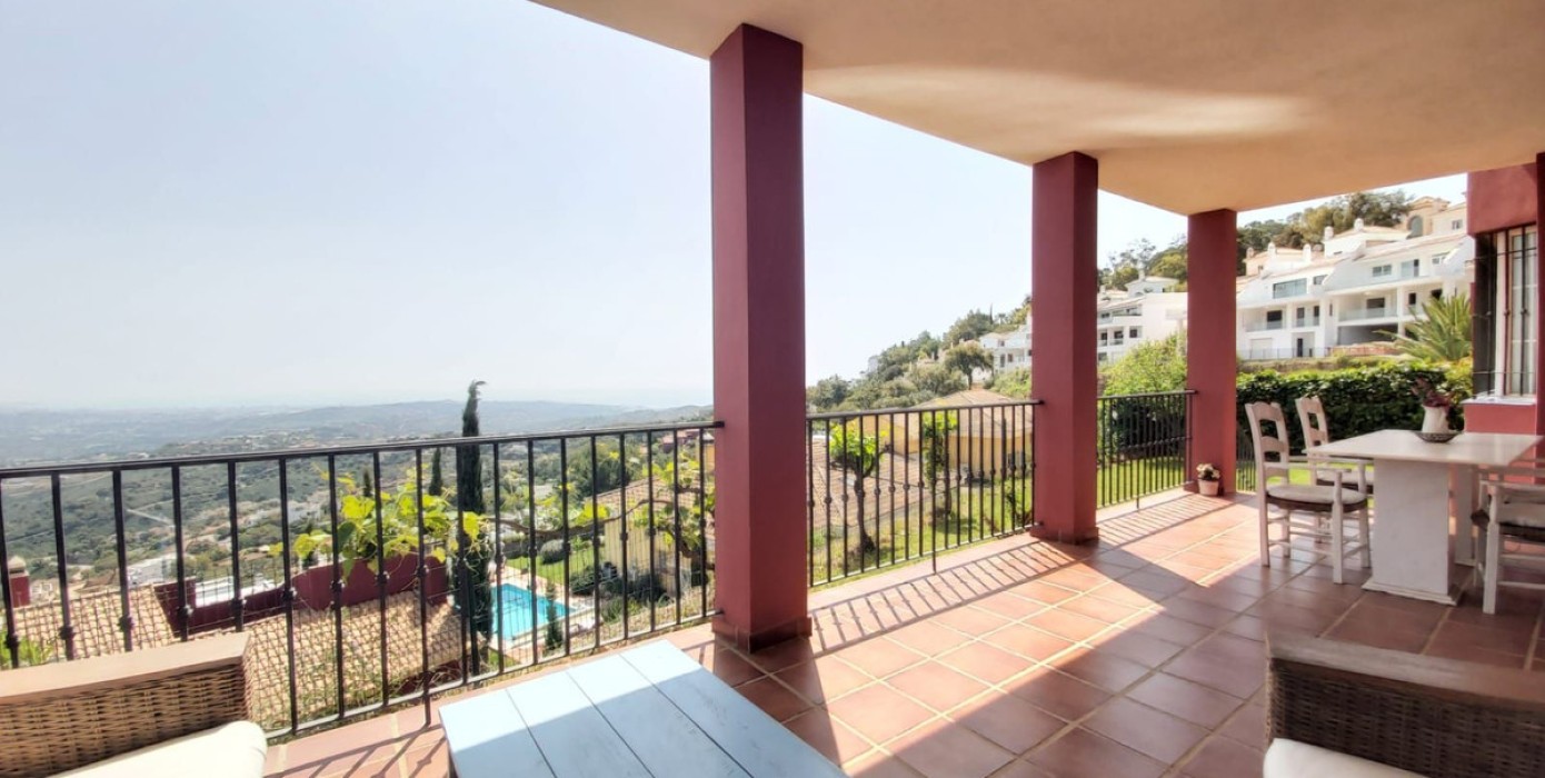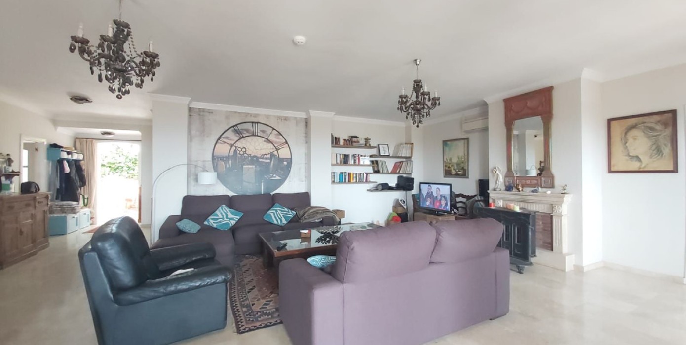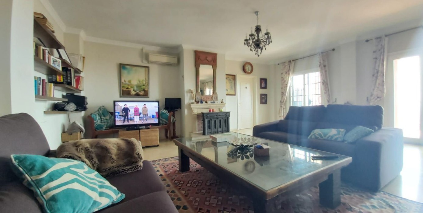 We are pleased to offer you this extraordinary townhouse in Elviria.Built on a plot with 850 Sq m and 480 Sq m useful, distributed over 2 floors and thanks to its fantastic location, panoramic views of the sea, the mountains and the golf course.An interior design that will not leave you indifferent. Impeccable distribution, thus taking advantage of the space to perfection, with a rustic touch thanks to its sloping ceilings that give it a lot of charm and make it a very exclusive property.As you enter you will find a spacious and very bright living / dining room that leads to the main terrace from where you can enjoy the spectacular views mentioned above.
