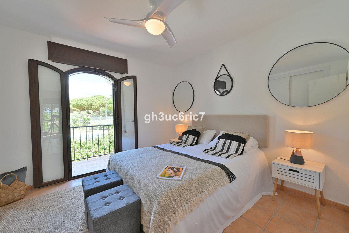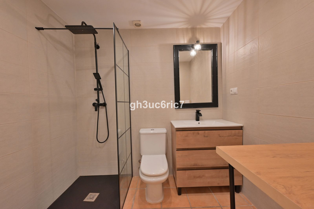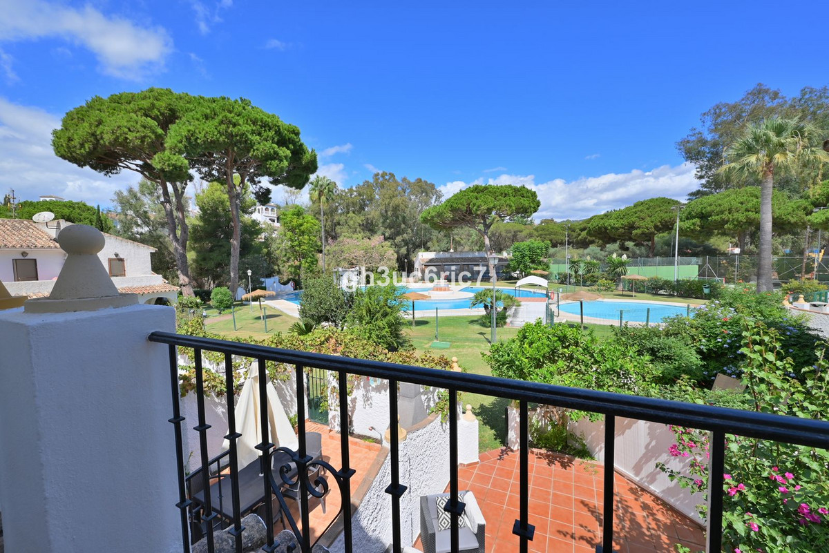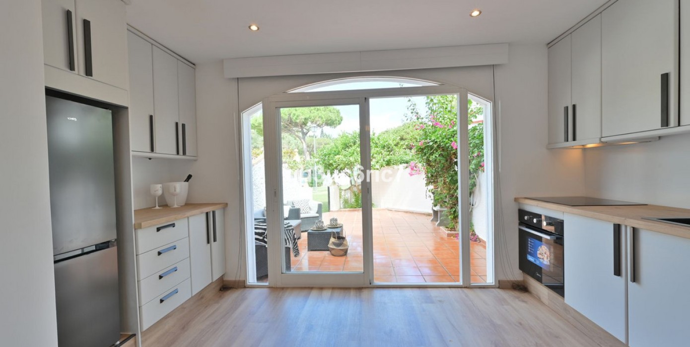 This stunning 3 bed / 1.5 bathroom townhouse is located in a charming area of Elviria, a few minutes walking distance to an abundance of bars, shops and restaurants as well as the white beaches by Golden Beach. The property has been carefully reformed by its current owner and is being sold fully furnished, as seen. The private garden leads out to a mature, green area where you will find a large swimming pool (with lifeguard) and paddle courts.On the entrance level there is a bedroom and a cloak room, as well as a spacious open-plan living area with kitchen containing all new appliances.