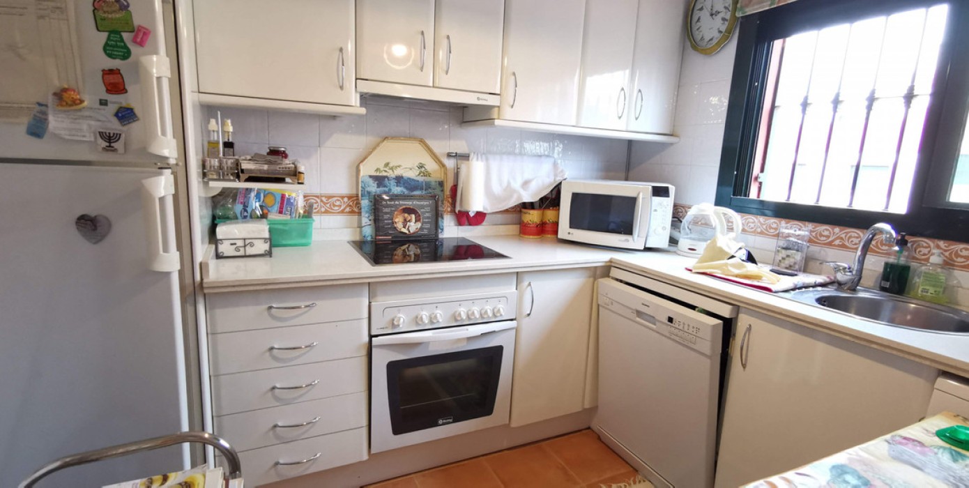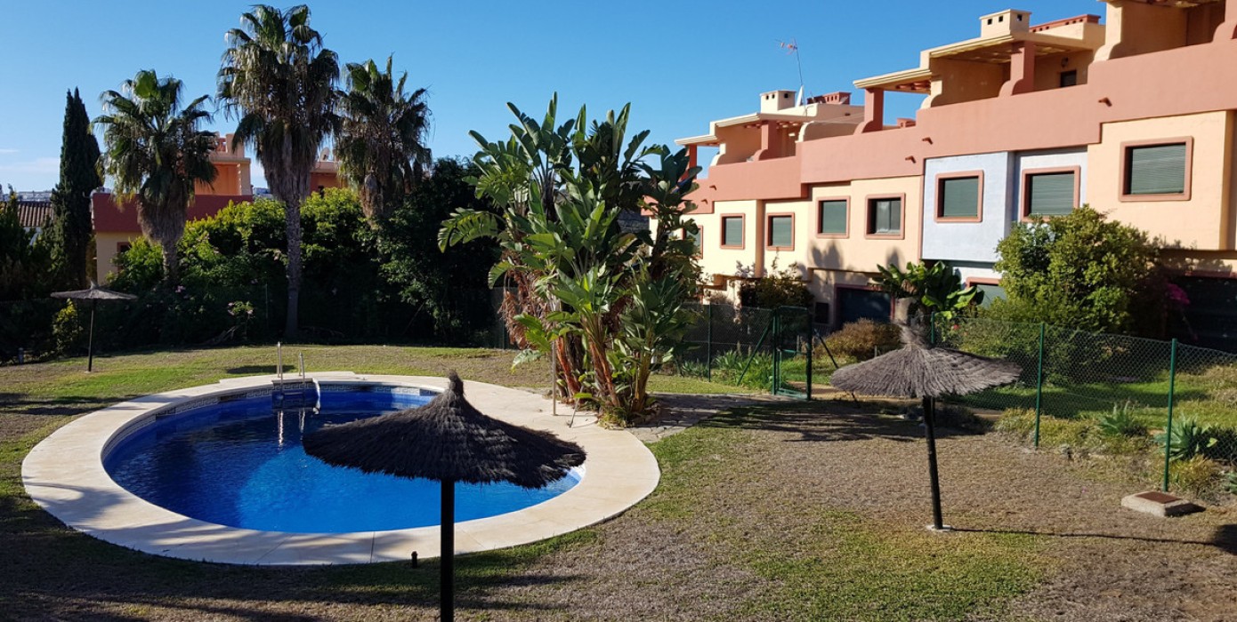 This is a three-bedroom townhouse with a private garden, located in the heart of Duquesa Golf. This house is located in a small urbanisation with a total of 13 houses. It is frontline golf and has great views.