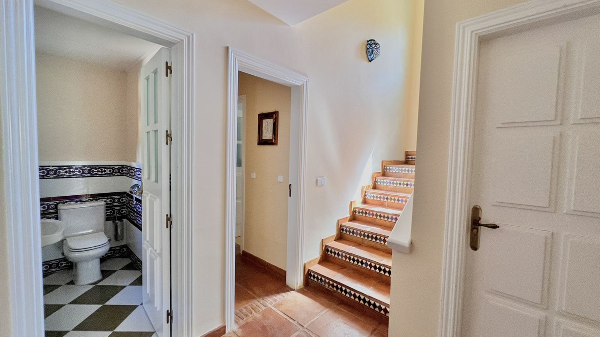 The property situated on the sought after area East Marbella – Bahia de Marbella, just within short driving distance from the centre of Marbella city, walking distance to the best beach. Small and prestigious community with residential complexes and private villas. The house is distributed on 3 levels offering on the ground floor a hall, big living room with the access to the terrace and garden with pool, dinning area, kitchen, guest toilet and 2 bedrooms in suite.
