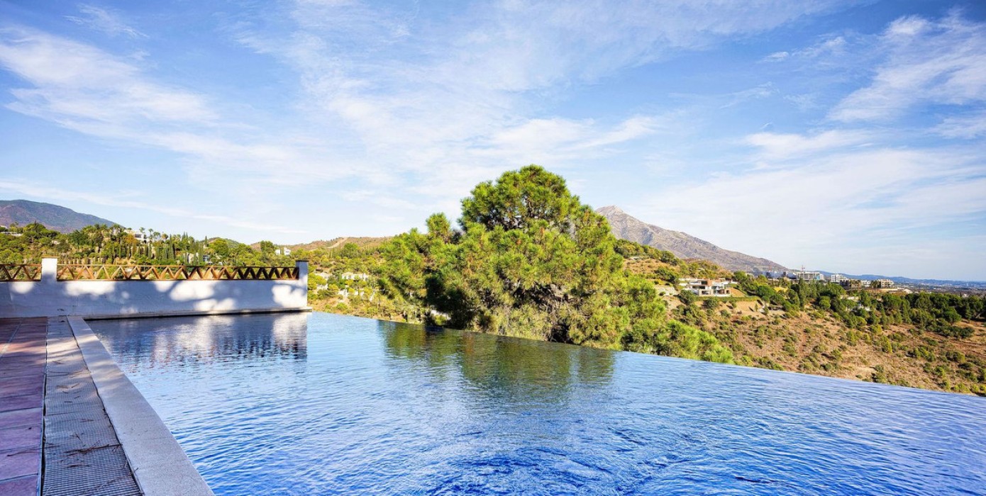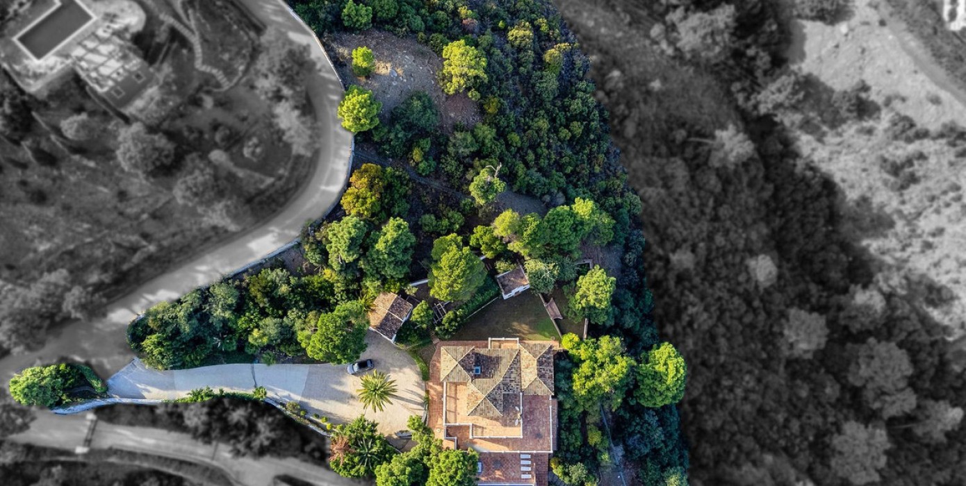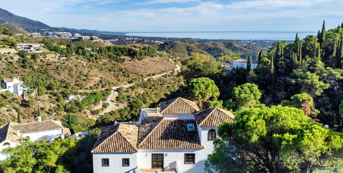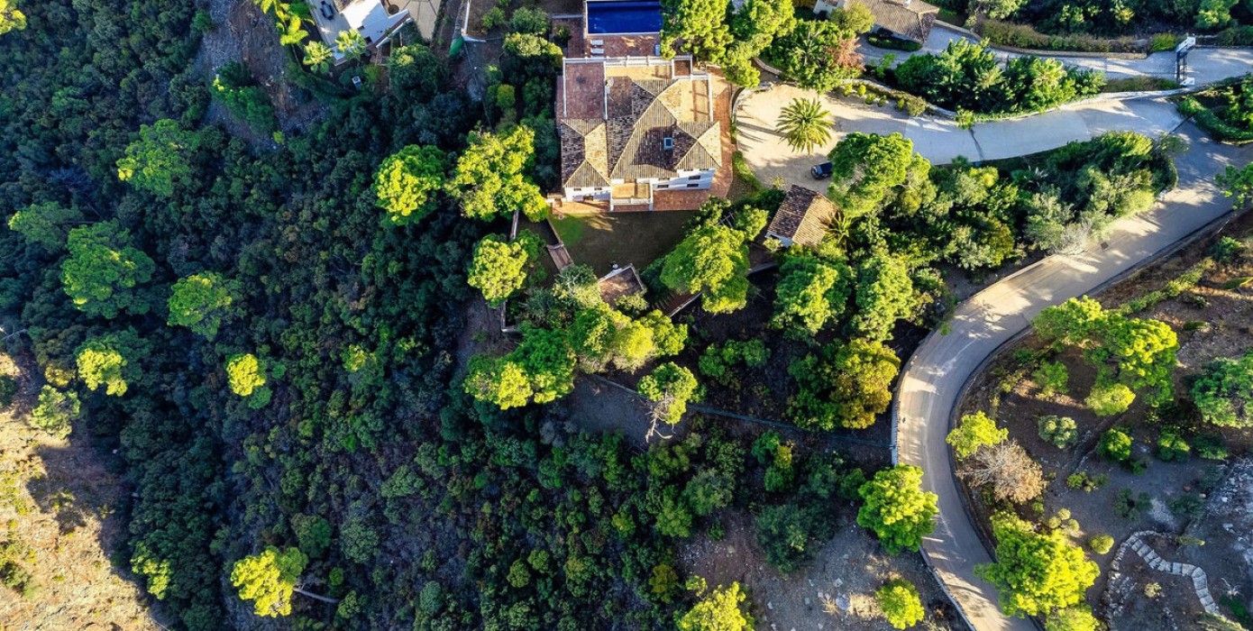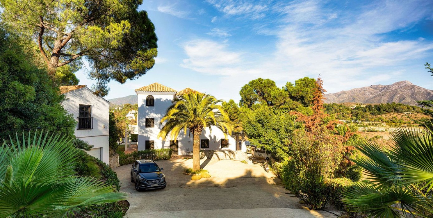 Classical style quality villa in urb. El Madroñal, entrance 2. Private and quiet, south-east to south facing. Views to La Concha mountain, the Coast of Marbella and the Mediterranean. The total land area of 5.900m2 gives this property/project different future devlopment possibilities.