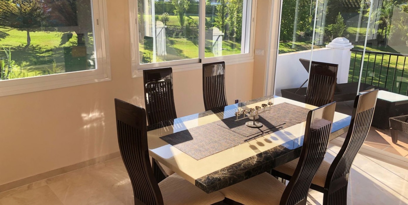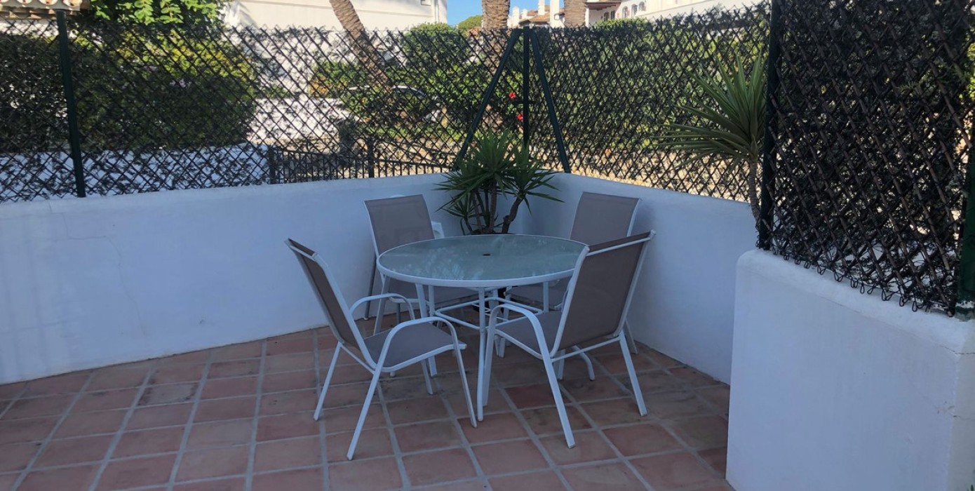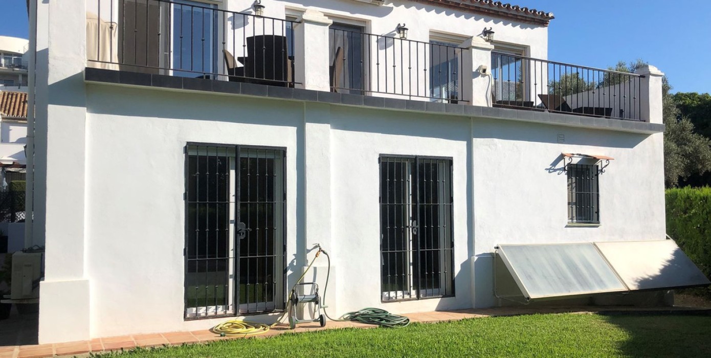 A lovely, spacious 3 bed, 3 bath detached villa, located in the very popular beach side community of Dos Hermanas. Dos Hermanas is very conveniently located on the beach side of the A7, on the New Golden Mile between Estepona and San Pedro and has perhaps the largest community gardens and pool in the area. The property itself is located in a quiet cul-de-sac and has a private garden and open views from the upstairs terrace, across the community gardens. The interior of the property is inverted, such that the bedrooms and bathrooms are on the ground floor, with the living room, dining room and kitchen located upstairs, to take advantage of the lovely views of the community garden from the upstairs of the property.