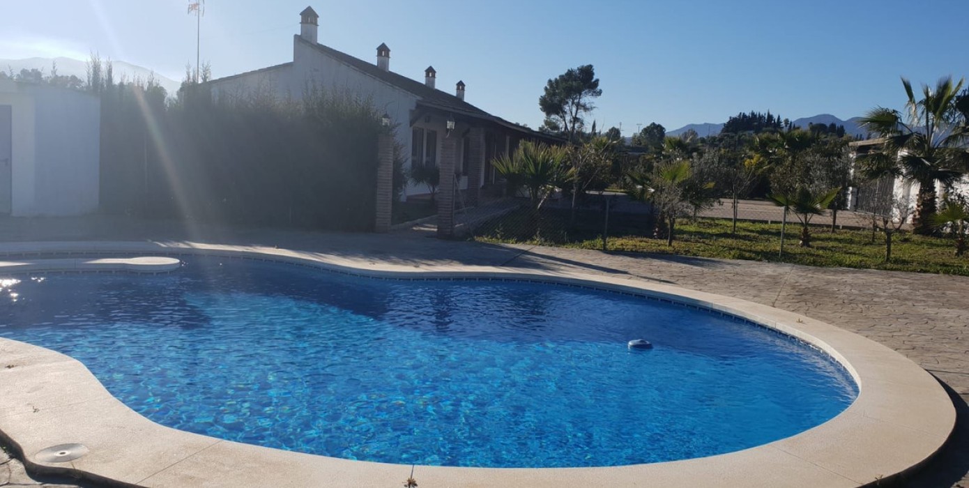 Finca with a lot of land, perfect for animals or country vacation. With 6 bedrooms and 6 bathrooms, there is room for a lot of people. It has a nice livingroom and fully fitted kitchen and there is a nice big pool.There is room for about 7 cars outside.
