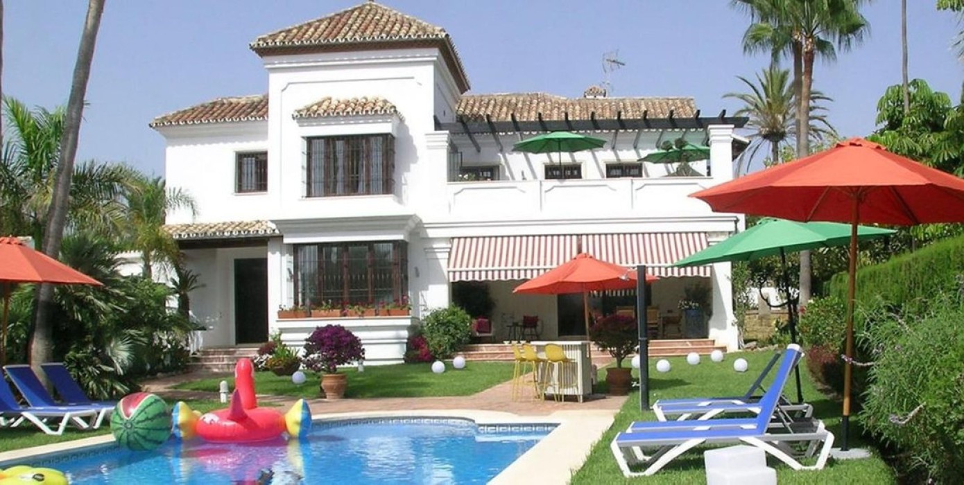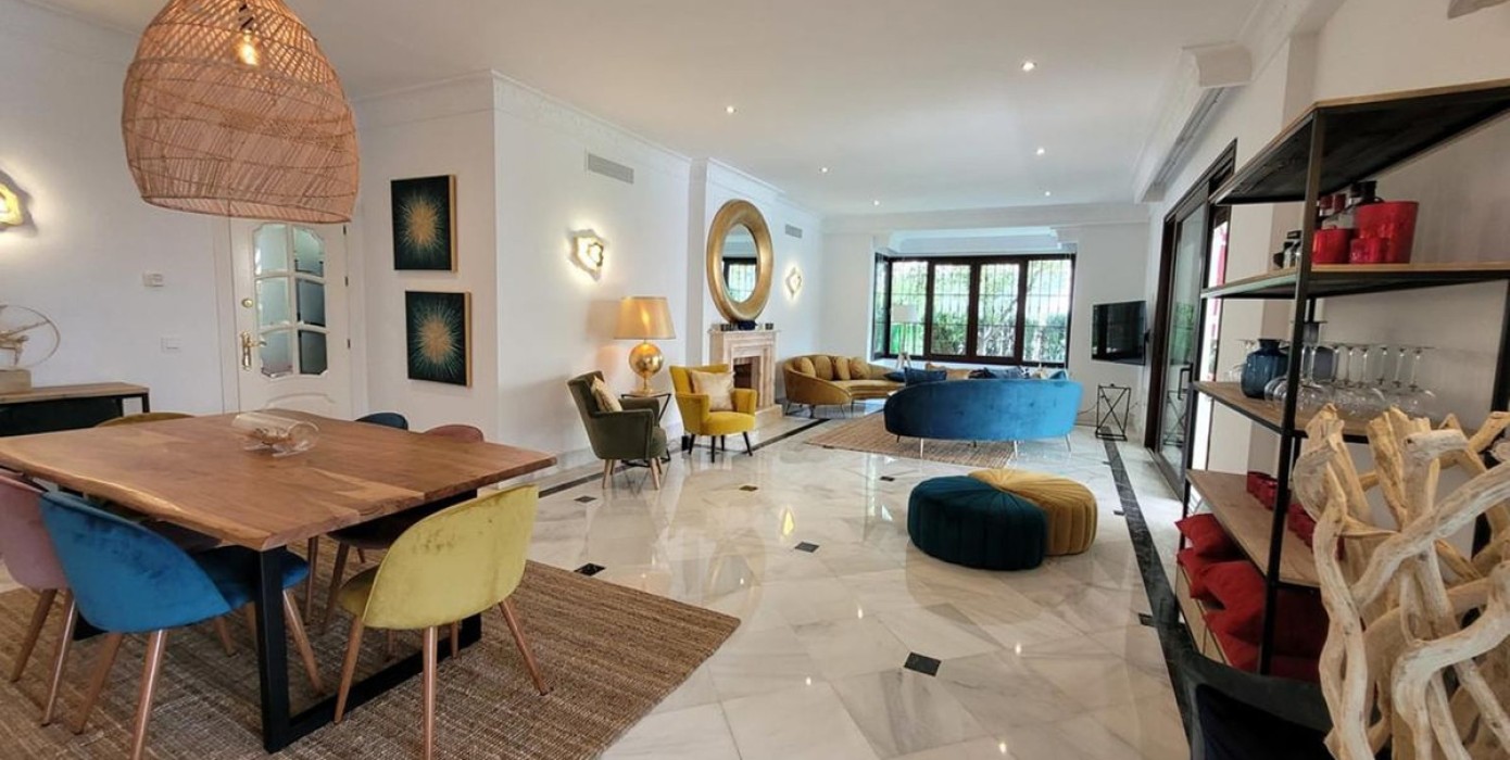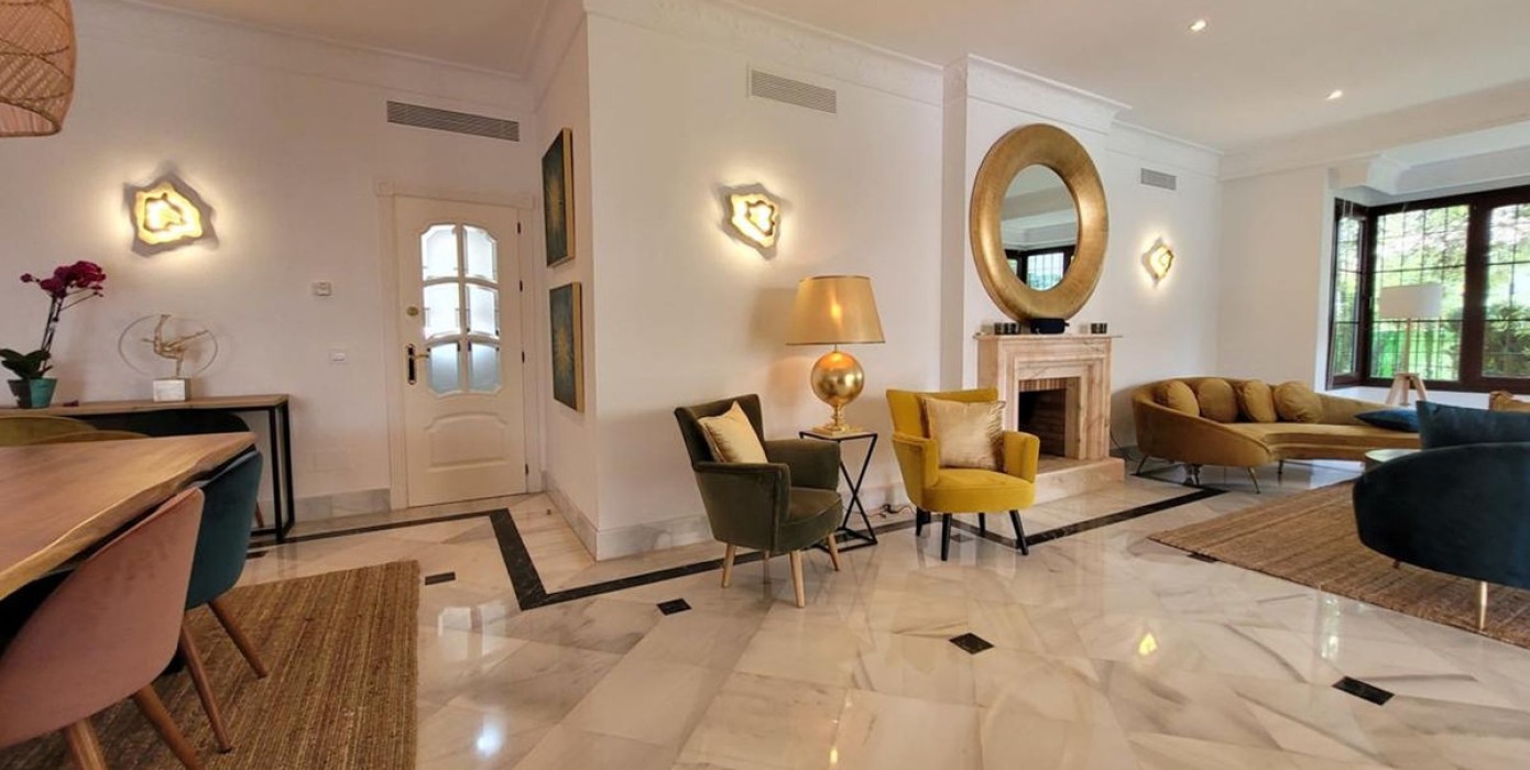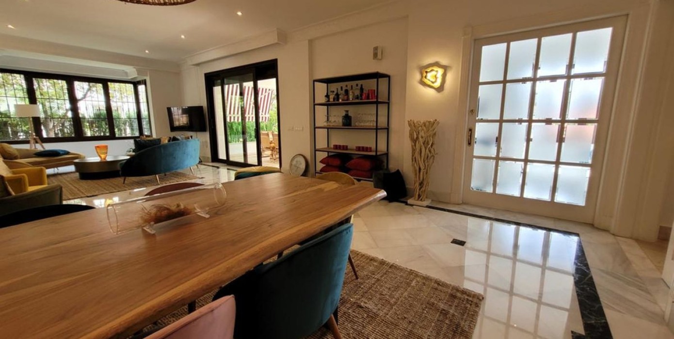 Location, location, location. Do you want to live 100 meters from the beautiful beach of Marbella/El Rosario? Then we now have this pearl for sale for you. Everything in and around this villa exudes luxury and class. When the large automatic gate opens, your mouth falls open in amazement at all that beauty. Everything in perfect condition and recently completely renovated. There is a garage for 4-6 cars, a large garden with a lovely swimming pool with plenty of lounge space and several terraces on the ground floor and first floor.The heavy wooden front door opens to a central hall with the majestic staircase to the first floor with 4 spacious bedrooms, 2 en-suite and 1 in the hallway. The floors are covered with shiny high-quality marble and all doors and frames (double glazing) are of high quality.